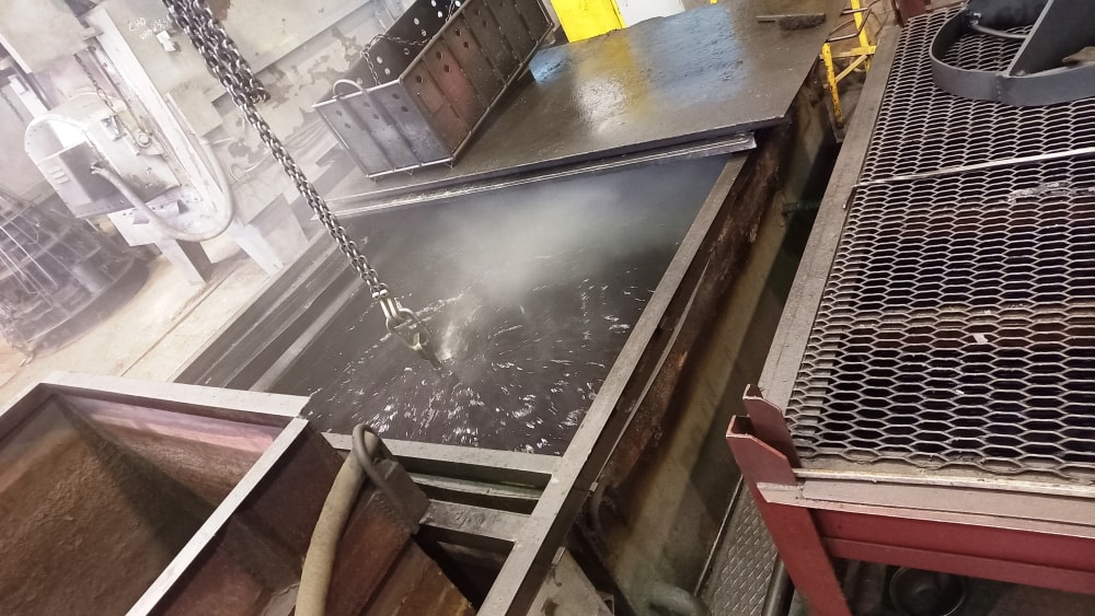Нагрев металла до температуры выше критической (tmax 1250°C) и быстрое охлаждение в воде, масле или на воздухе. Цель — увеличение твёрдости и прочности